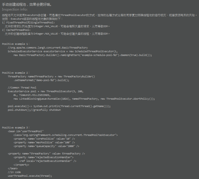 这里提示的是我们创建线程池的方式,建议我们使用手动创建线程池,不要使用Executors工厂类,因为手动创建更能有效规划资源的使用。