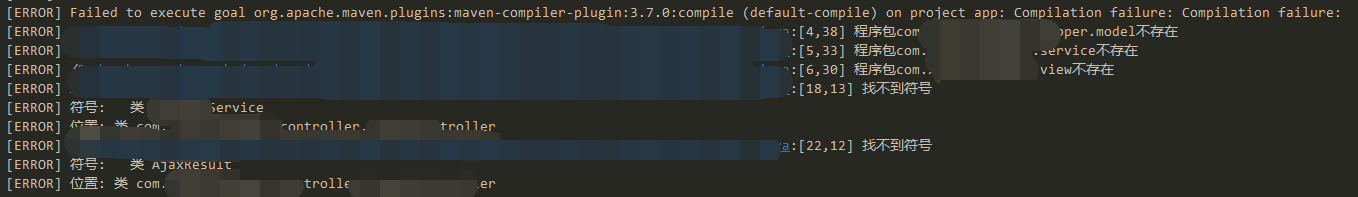 项目为springboot项目,maven聚合工程,分为app、api 、common、gongqiu四个项目,app、api 、common的父类是gongqiu,app和api依赖common,打包时报错common中的程序包xxx不存在,错误信息如下: