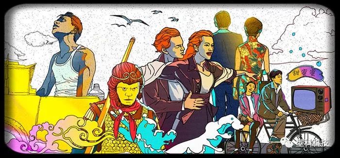 手绘漫画的设计风格,从视频镜头一个放映机开始展现一镜到底内容,将5部经典电影中的经典场景桥段展示。
