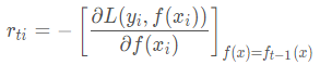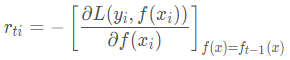 集合上两式,我们可以计算出第t轮的第i个样本对应类别l的负梯度误差为: