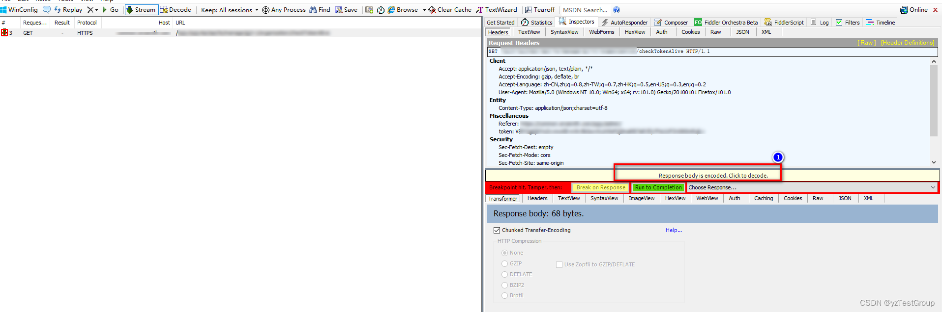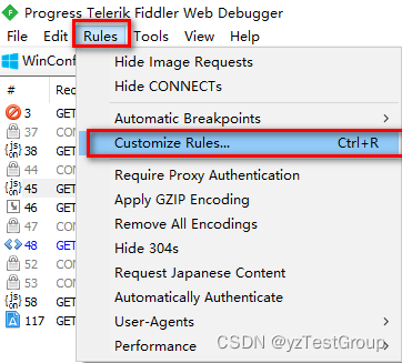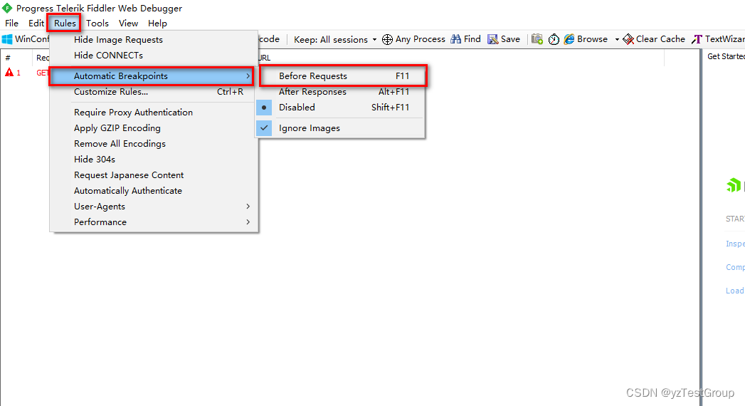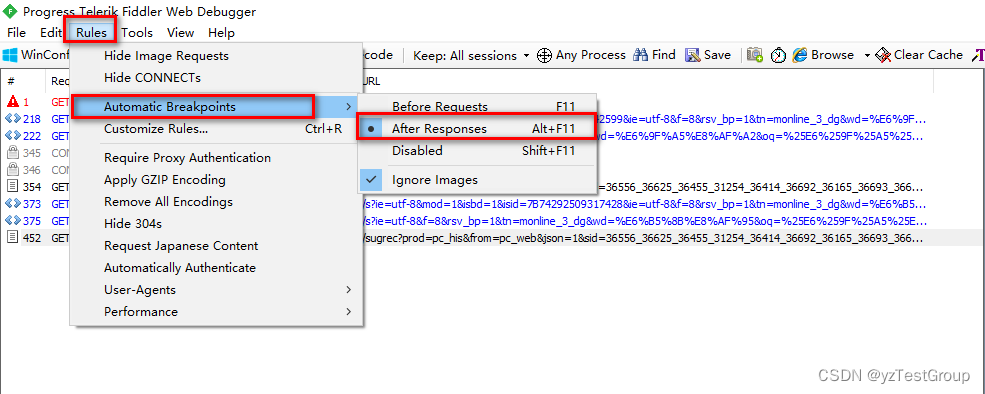 在浏览器发起请求直接在fiddler设置拦截请求
