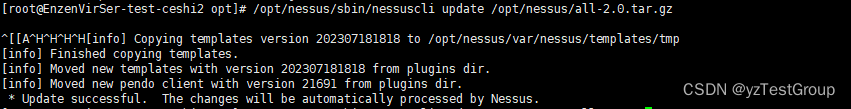 执行语句:/opt/nessus/sbin/nessuscli update /opt/nessus/all-2.0.tar.gz