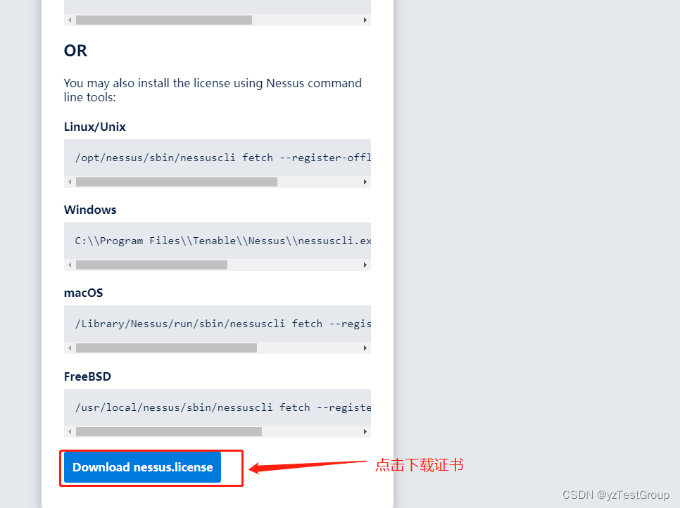 执行语句语句:/opt/nessus/sbin/nessuscli fetch --challenge