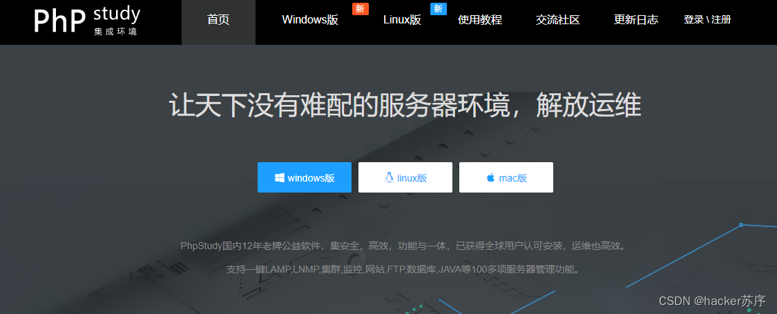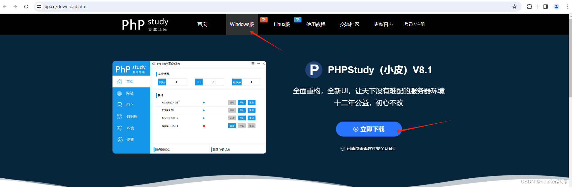 1.由于我电脑的操作系统为windows10_64x,使用其他系统(linux、mac)的同学请选择对应版本的phpstudy.