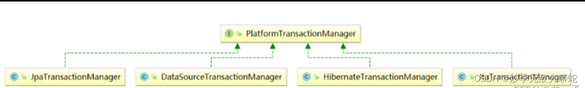 JpaTransactionManager:如果你用jpa来操作db,那么需要用这个管理器来帮你控制事务。