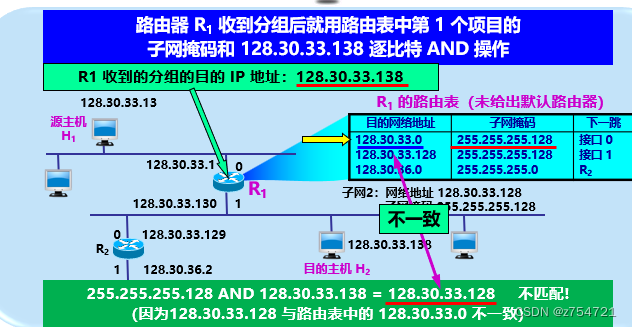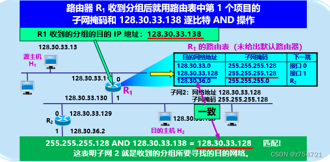 由于从IP数据报无法直接判断源主机和目的主机所连接的网络是否进行了子网划分,就引入“子网掩码”的概念,找出IP地址中子网掩码部分。