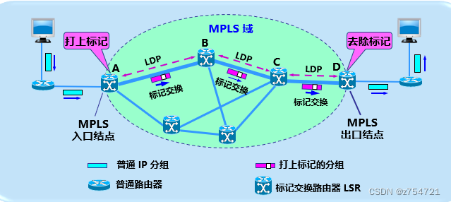 标记:指每个分组被打上一个标记,根据这个标记对分组进行转发