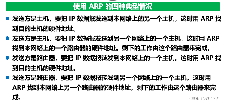 如果所要找的主机和源主机不在同一个局域网中,那么就要通过ARP找到一个位于本局域网上的某个路由器的硬件地址,然后吧分组发送给这个路由器,让这个路由器把分组转发给下一个网络,剩下的工作就由下一个网络来做。