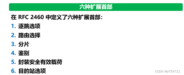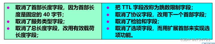 IPv6把原来IPv4中选项的功能放在拓展首部,并将拓展首部交给路径两段的源站和目的站的主机来处理,而不需要路由器来处理。
