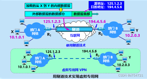 利用公用的互联网作为本机构各专用网之间的通信载体,这样的专用网又被称为“虚拟专用网VPN”