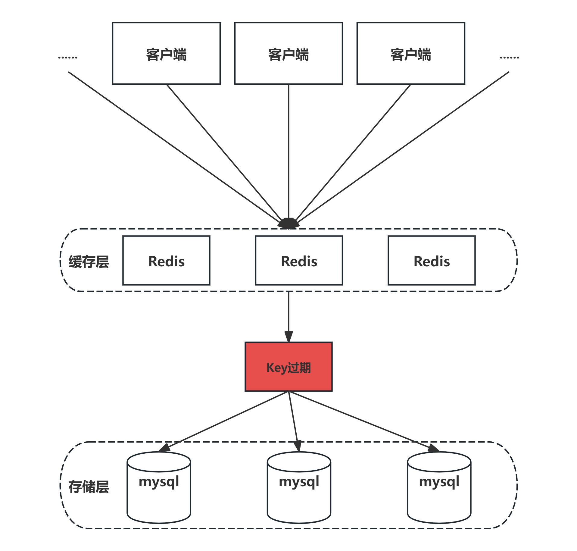 (2)分级缓存。第一级缓存失效的基础上,访问二级缓存,每一级缓存的失效时间都不同。
