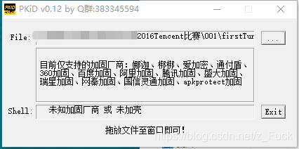 程序运行效果显示存在两个文本框以及两个按钮,首先进行查壳检测: