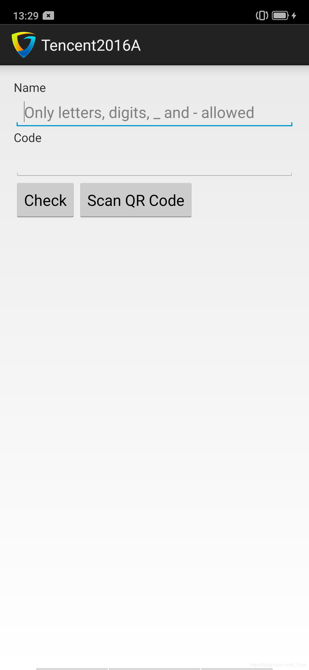 Tencent2016A是一个简单的注册程序,见附件,请写一个注册机,点击Check即可显示是否通过, Name和Code可以手动输入,也可以通过扫描二维码输入。