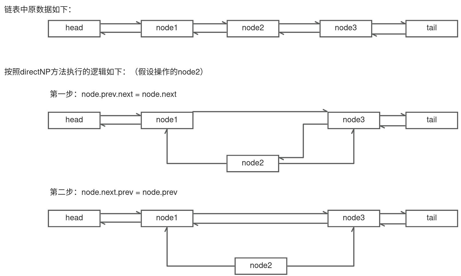 当然图3中的这个移动到列表头部的逻辑,node2可以是任意的状态,node2的next和prev可以指向任何节点,只需要调用moveFirst之后就会变成最终的node2在head下一个节点的状态。