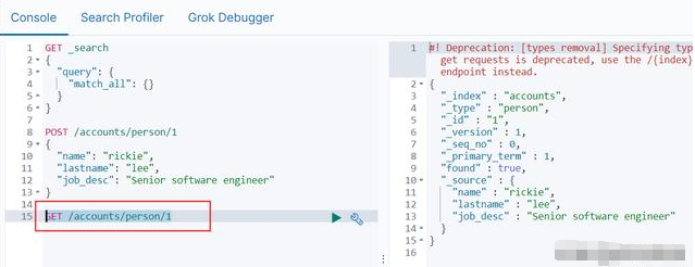 创建一条新的文档,注意:_doc【Type名称,约定都用_doc】,此时就没有Deprecation 提示信息了。