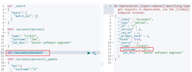 POST /accounts/person/1/_update { "doc":{ "lastname":"li" } }