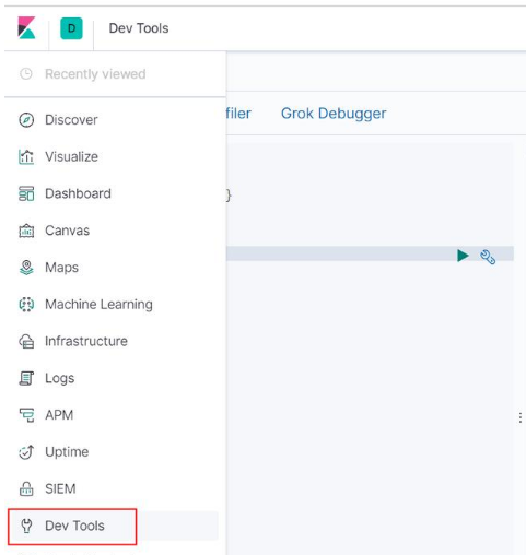 启动Kibana,访问http://localhost:5601,点击Dev Tools 菜单项。