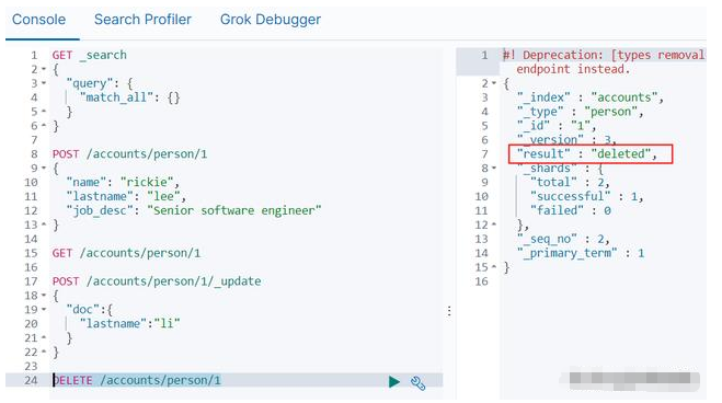 在前面的操作过程中,会看看到 Deprecation 提示信息,意思是type已经移除了。