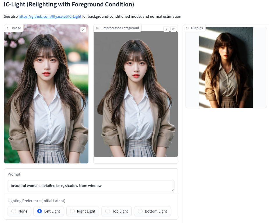 体验地址:https://huggingface.co/spaces/lllyasviel/IC-Light