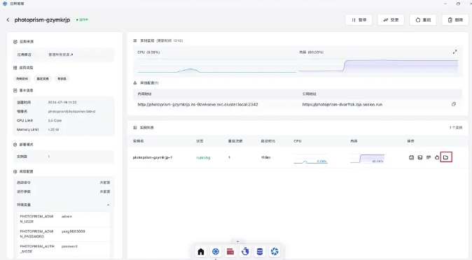导入的照片将按日期重新整理并存储在 /photoprism/originals 文件夹下。可以在应用详情页面点击右下角的“文件管理”按钮,访问 PhotoPrism 的文件系统。