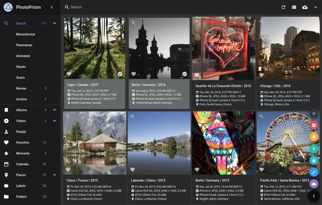 多文件格式支持:除了常见的 JPG 和 PNG 格式外,PhotoPrism 还原生支持了 RAW 格式,无需额外转换。此外,它还支持 Live Photos 和视频文件,使其适用于专业摄影师和普通用户。
