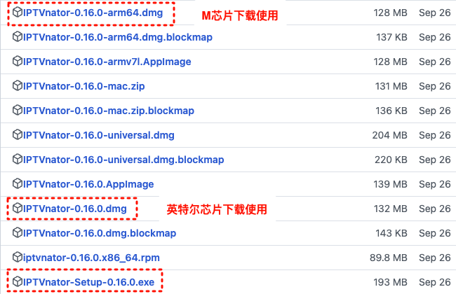 从 GitHub 页面 下载适用于自己操作系统的安装包。如果访问不了项目地址,我也提前下载好了,后台回复 “iptvnator” 即可获取。