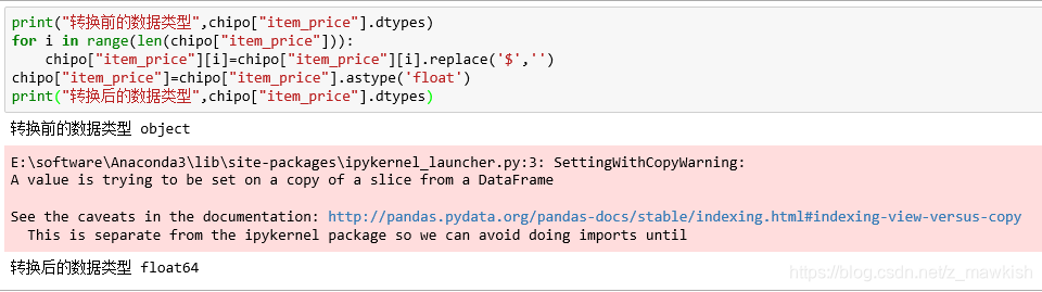print("转换前的数据类型",chipo["item_price"].dtypes)