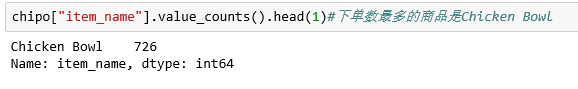 chipo["item_name"].value_counts().head(1)#下单数最多的商品是Chicken Bowl
