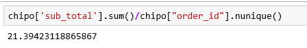(chipo['quantity']*chipo['item_price']).sum()/chipo["order_id"].nunique()