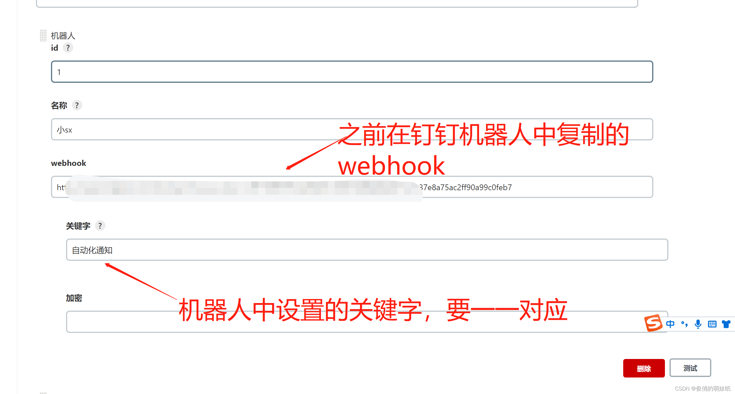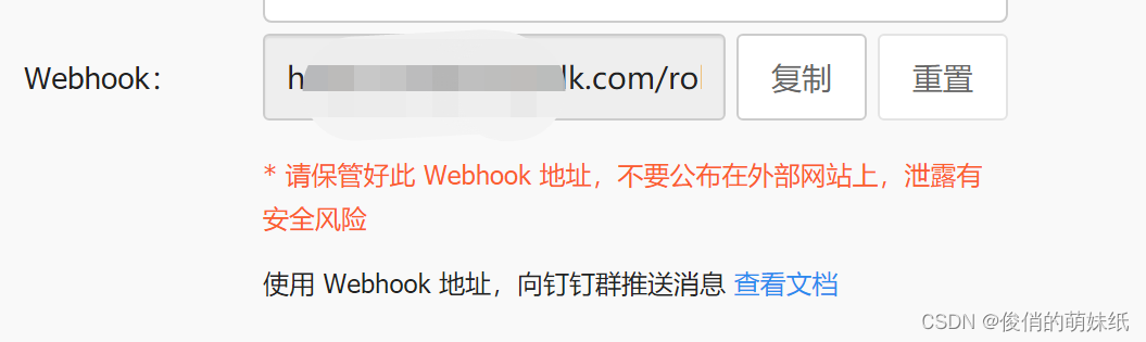 添加完成后,复制webhook,很关键