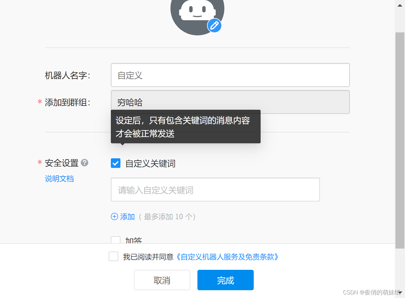 添加机器人姓名,和关键字