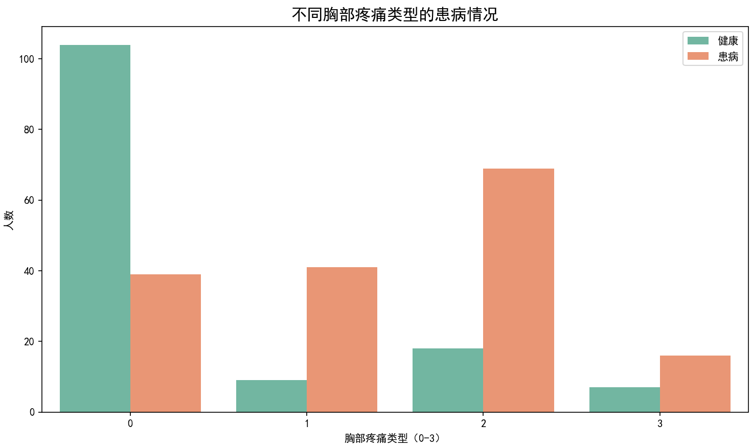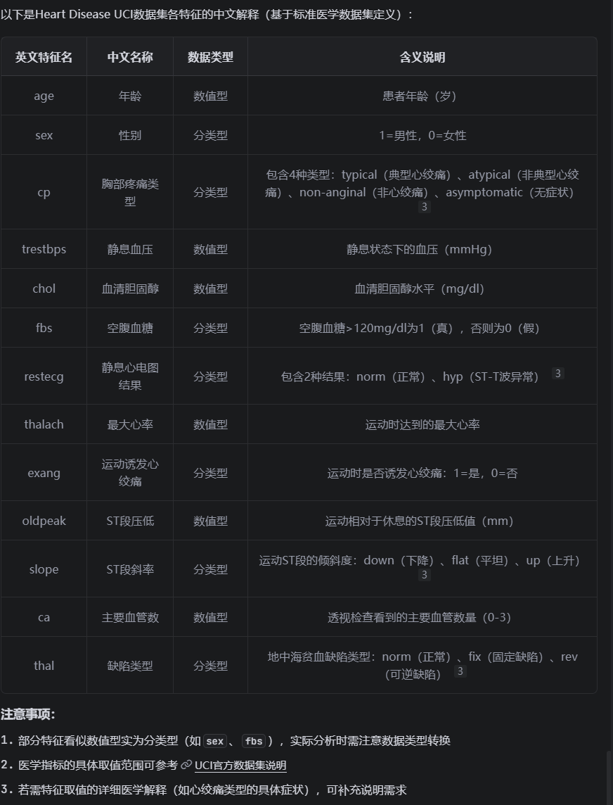 # UCI数据集中cp字段含义:0=典型心绞痛,1=非典型心绞痛,2=非心绞痛,3=无症状
