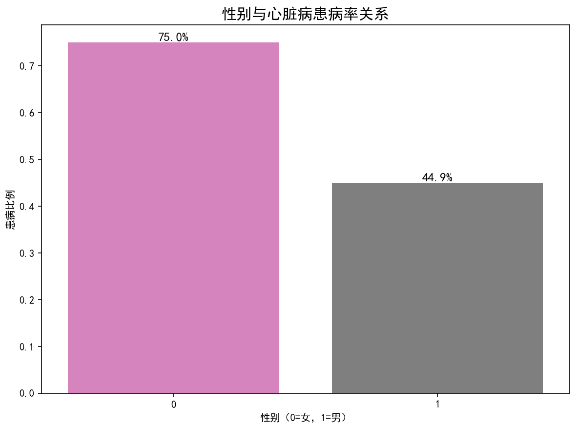 plt.xlabel('是否患病(0=健康,1=患病)')