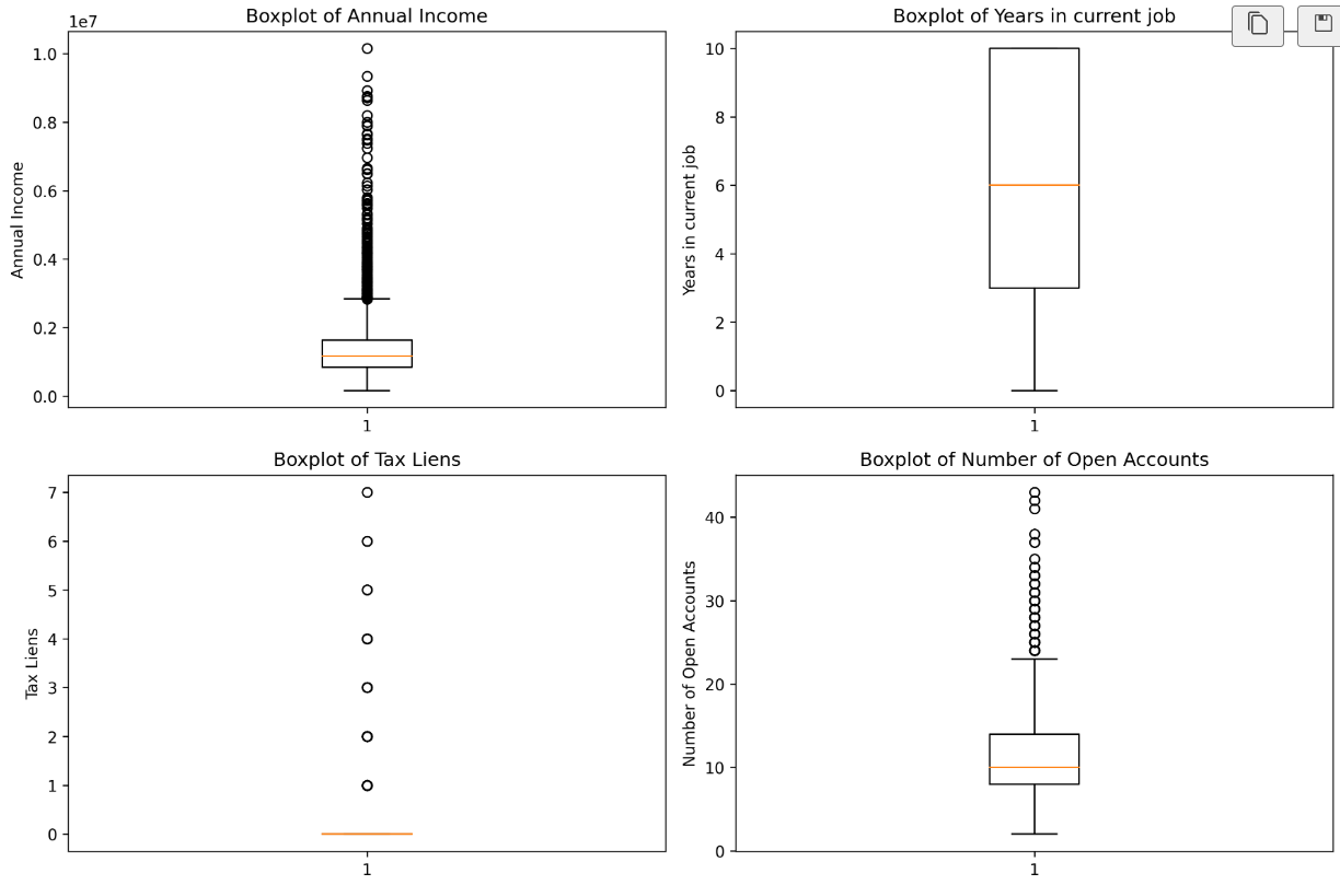 features = ['Annual Income', 'Years in current job', 'Tax Liens', 'Number of Open Accounts']
