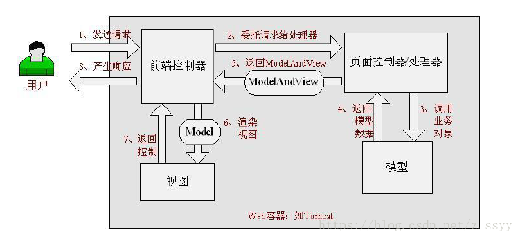 (4)(5)调用业务处理和返回结果:Controller调用业务逻辑处理后,返回ModelAndView。