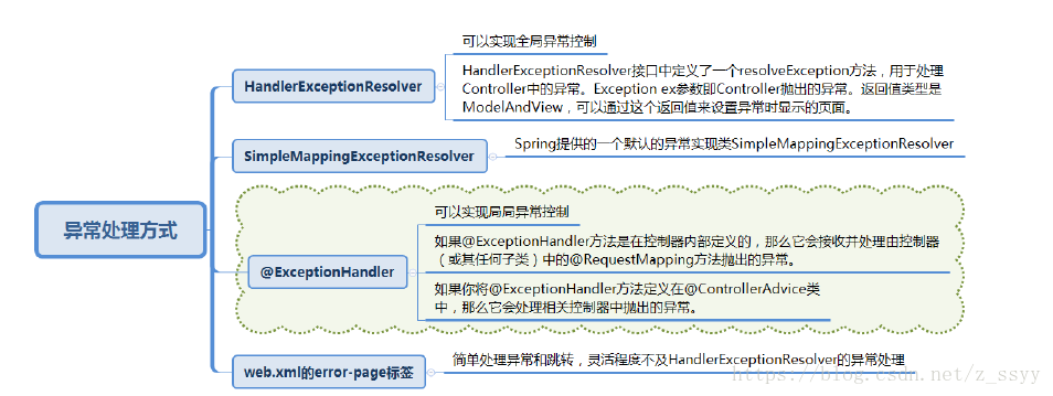 Spring的处理器异常解析器HandlerExceptionResolver接口的实现负责处理各类控制器执行过程中出现的异常。也是上面提到的,是DispatcherServlet中的特殊bean,可以自定义配置处理。某种程度上讲,HandlerExceptionResolver与你在web应用描述符web.xml文件中能定义的异常映射(exception mapping)很相像,不过它比后者提供了更灵活的方式。比如它能提供异常被抛出时正在执行的是哪个处理器这样的信息。HandlerExceptionResolver 提供resolveException接口