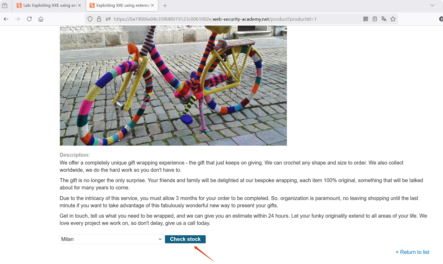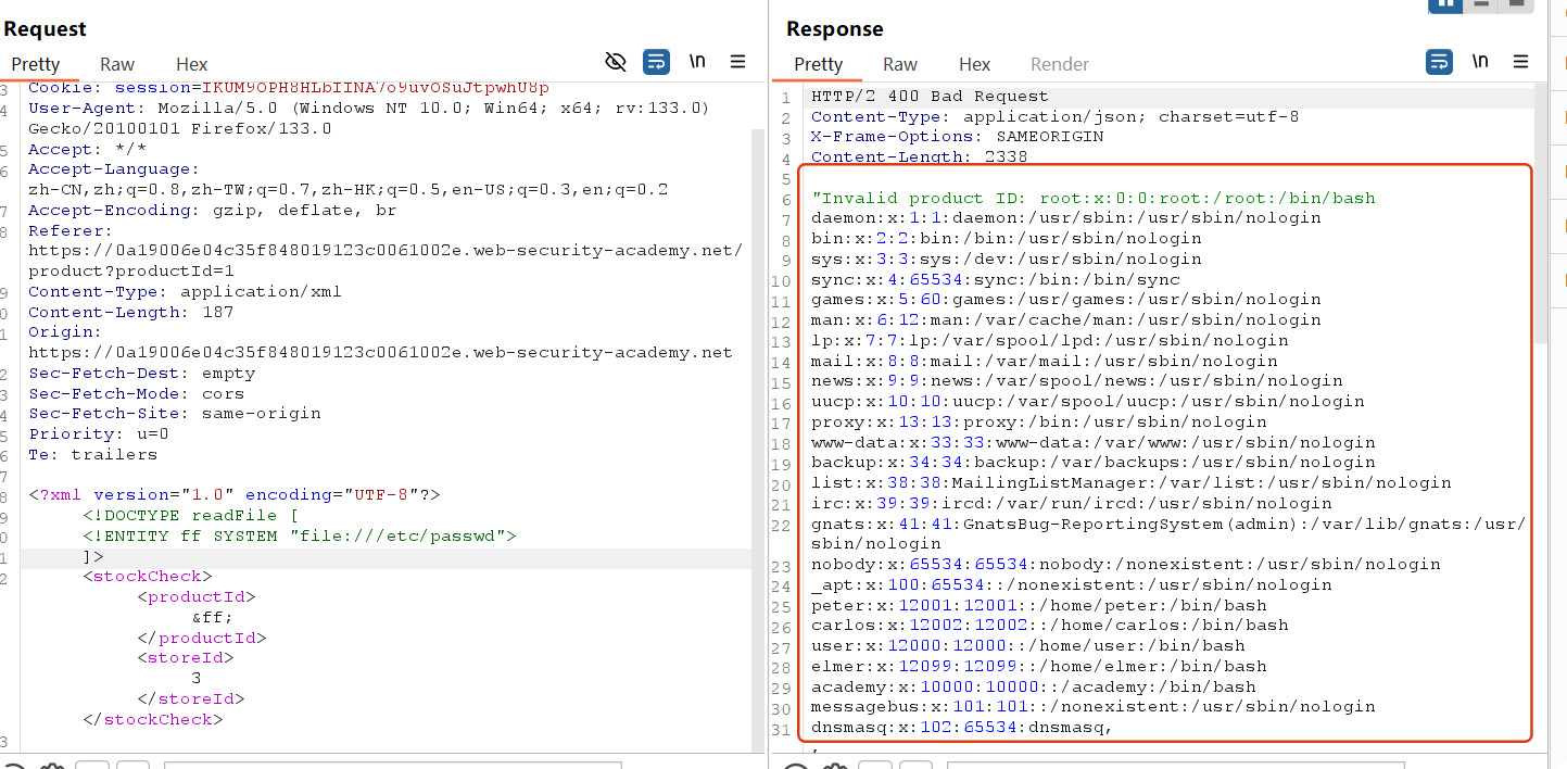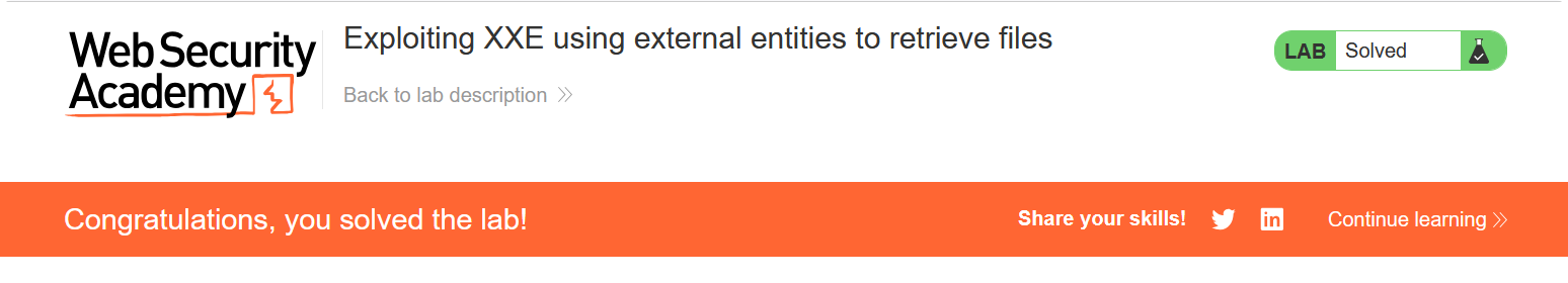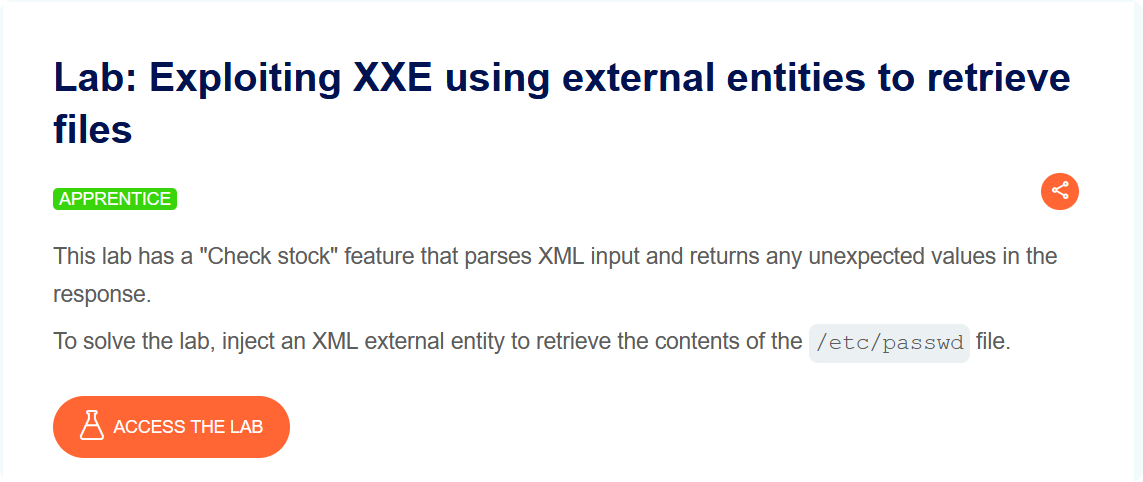靶场地址:https://portswigger.net/web-security/xxe/lab-exploiting-xxe-to-retrieve-files
