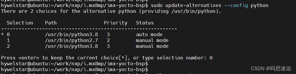 python 版本问题一般在于python2.x 与python3.x 的切换,这里强烈建议采用update-alternatives进行管理: