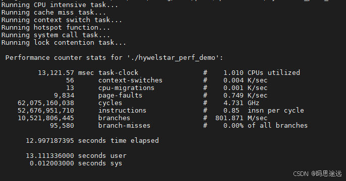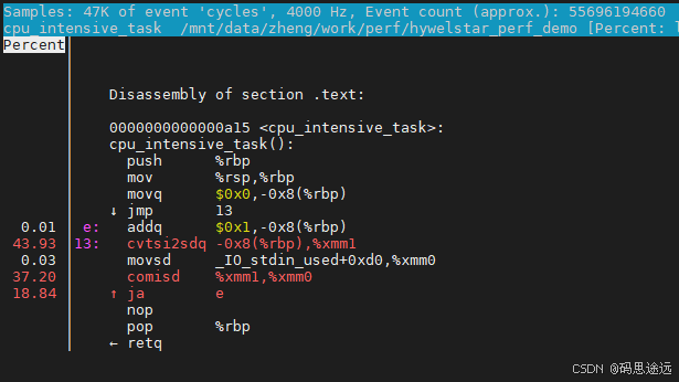 从上面这个例子查看,cpu_intensive_task 函数中,绝大部分时间消耗在以下几条指令上: