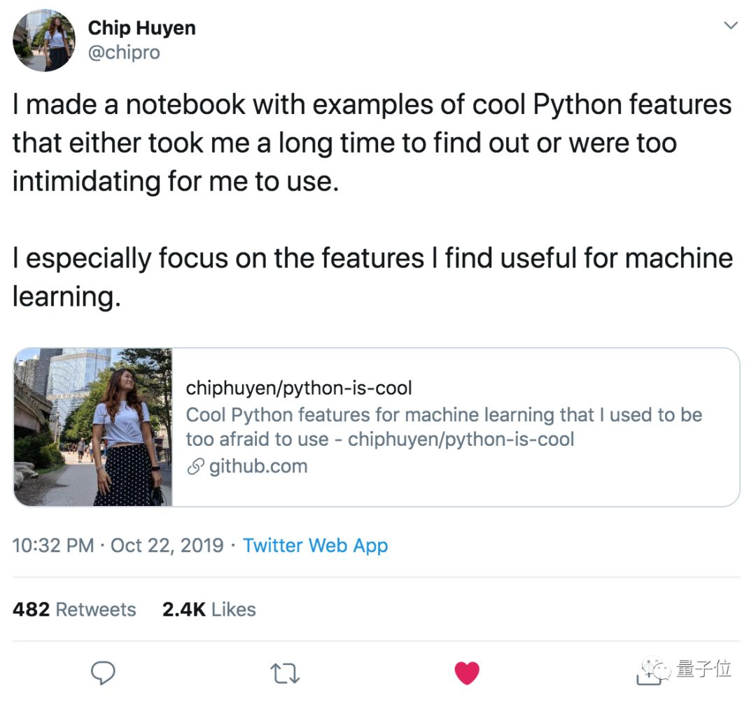 常常发资源的英伟达工程师小姐姐Chip Huyen,又发射了一套Python隐藏功能合集。