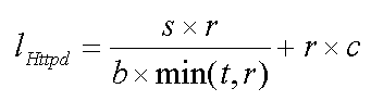然而,NIOHttpd的处理时间不再依赖于t。对于NIOHttpd,传输时间l在很大程度上依赖于客户端的带宽b、文件大小s以及前面提到的常数c。由此可以得出公式二,从该公式可以得到NIOHttpd的最小传输时间。