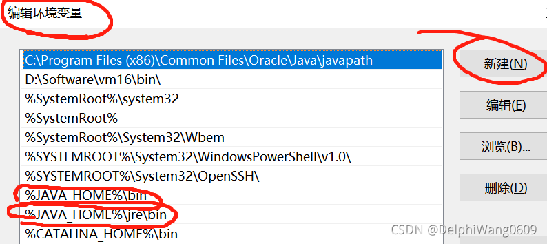 2、第二步配置相关的java环境,下载jdk-8u241-windows-x64.exe,Oracle官网下载,(https://www.oracle.com/java/technologies/javase/javase8-archive-downloads.html,)里面包含jdk和jre,安装时建议重新再新建一个java文件,把jdk和jre安装目录放在这个文件夹下,开始配置java环境,点击此电脑,属性,找到高级系统设置,点击环境变量,新建系统变量,变量名为JAVA_HOME,变量值为jdk的安装目录,然后在系统变量中找到Path变量,如图1,在里面加入%JAVA_HOME%\bin和%JAVA_HOME%\jre\bin这两条语句,如图2。还需要配置CLASSPATH,如图3。一般这个时候java的环境就配置成功了,可以通过在dos黑窗口中输入java -version或者java即可验证环境配置是否成功,如图4,5所示