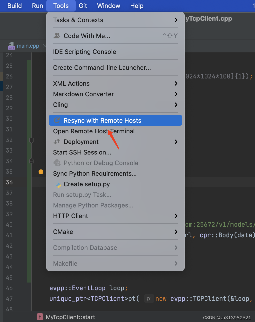 2.当clion找不到头文件时,但是能顺利编译运行,需要resync with remove hosts,后能顺利找到头文件