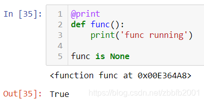 A:我们也展示了不用@语法糖时的同等代码。func原来确实是绑定到一个函数,但后来func却又绑定到由print(func)函数执行过后的返回值,print函数的返回值就是None。执行过func=print(func)代码过后,func绑定的内容变了。