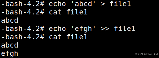 不想清空再写入,使用 >> 这种重定向叫作追加重定向;echo默认在字符串尾部有换行