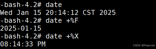 显示时间,加上选项(选项最开始又加上‘+’)可以设置打印出来的时间的格式:%Y表示年,%m表示月,%d表示天,%F相当于%Y-%m-%d;%H表示时、%M表示分钟、%S表示秒,%X相当于%H:%M:%S;
