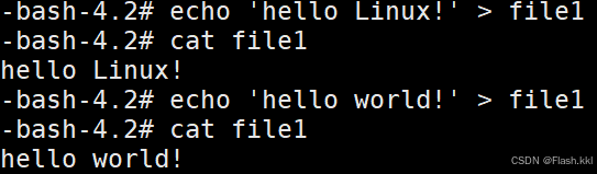2、重定向操作:echo 'helloLinux' ,在Linux中打印出hellolinux,实际上是把这个字符串写入显示器文件,我们可以把这个字符串写入其他文件,使用输出重定向操作,echo '……' > file1,那么字符串就被写入file1文件里面了;如果file1不存在,> 会进行新建文件,每次进行重定向时 ,> 会先清空文件内容再写入;那么可以推出新建文件时可以直接 > 文件名 此时建立了一个新的普通空文件,同时可以推出,当file1不为空时,直接 > file1 那么file1就被清空了
