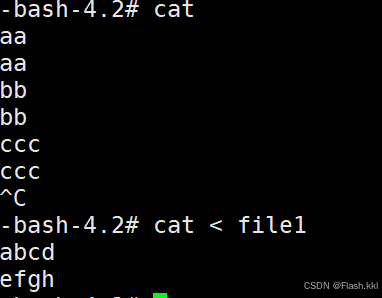 cat 默认从键盘文件读取写入进显示器文件,比如只使用cat命令,回车之后输入aa再回车,显示出aa;推出 cat < file1,就是把file1中的内容写入显示器文件,< 叫作输入重定向